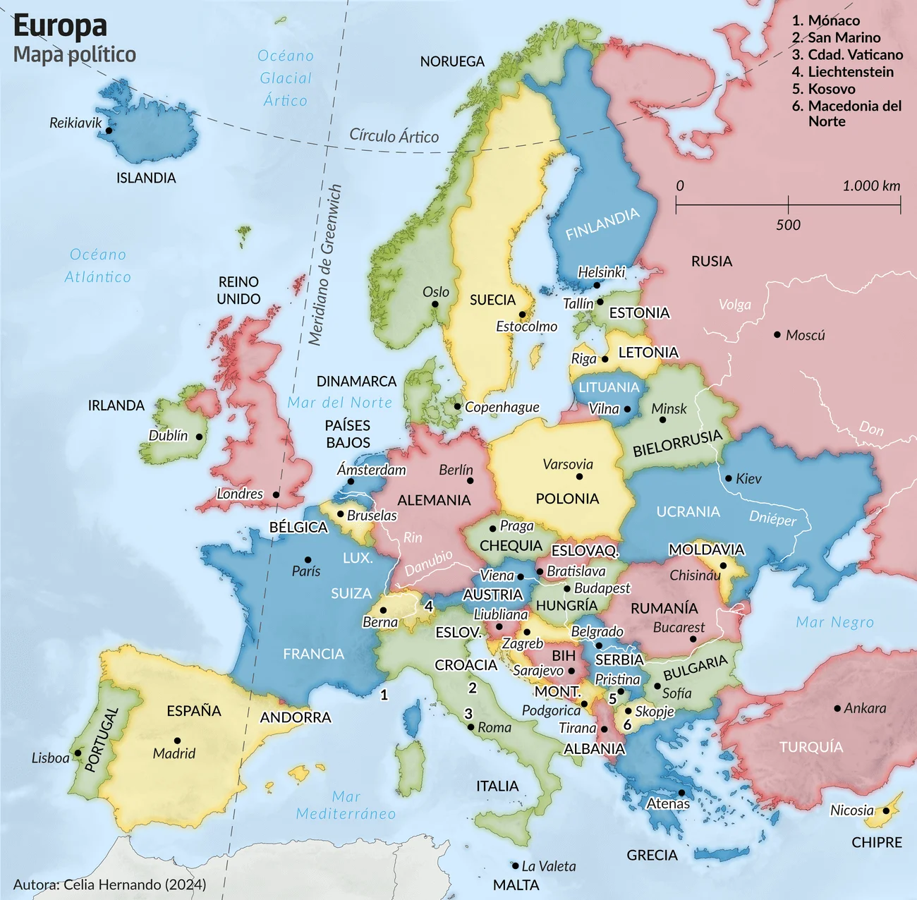 Albania, Alemania, Andorra, Austria, Bielorrusia, Bosnia y Herzegovina, Bulgaria, Bélgica, Chequia, Chipre, Ciudad del Vaticano, Croacia, Dinamarca, Eslovaquia, Eslovenia, España, Estonia, Finlandia, Francia, Grecia, Hungría, Irlanda, Islandia, Italia, Kosovo, Letonia, Liechtenstein, Lituania, Luxemburgo, Macedonia del Norte, Malta, Moldavia, Montenegro, Mónaco, Noruega, Países Bajos, Polonia, Portugal, Reino Unido, Rumanía, Rusia, San Marino, Serbia, Suecia, Suiza, Ucrania.
